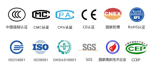 ☆  雙防爆認證、CPA認證、鹽霧認證、防護IP68認證、ROSH、CE、CNAS計量認證;